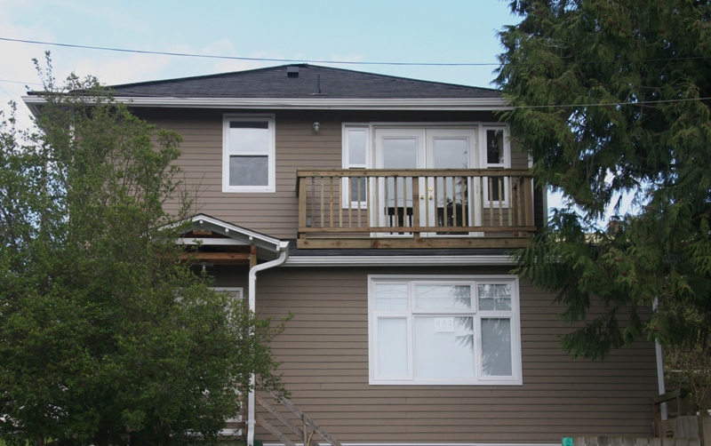 Front view of house with suite deck shown